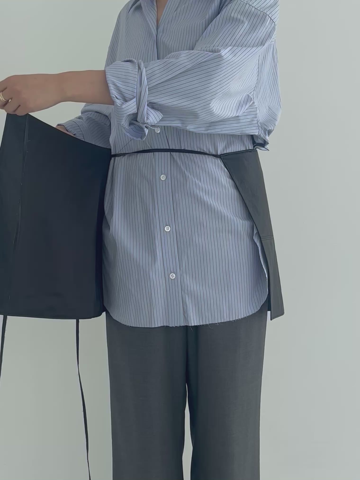ウエスト、シャツやジャケットの上から、トップス風にアレンジするなどスタイリング合わせてご自由にお楽しみいただけます。